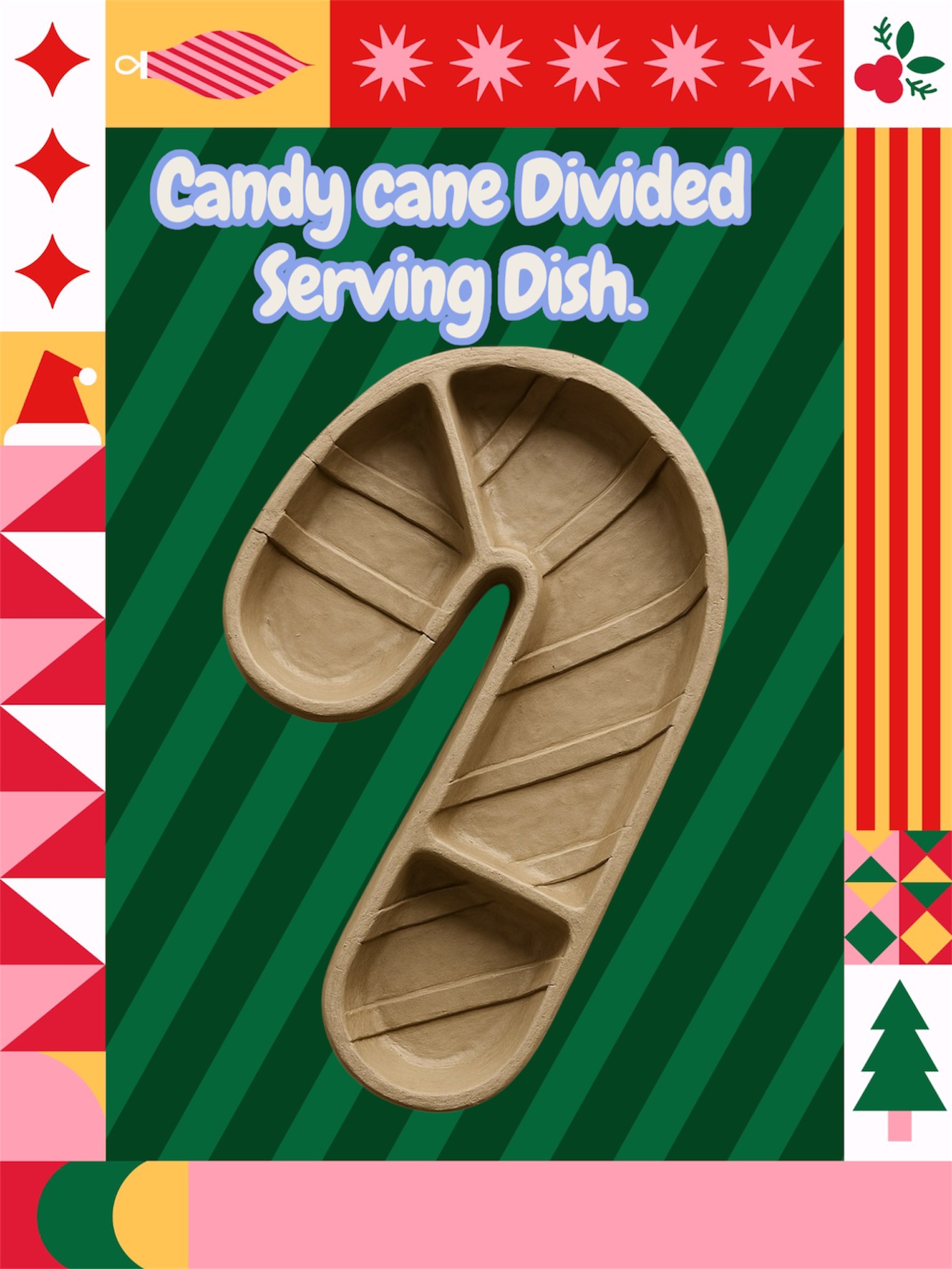Saturday December 6, 2025, 5-8PM Serve your holidays treats in festive style! This handmade ceramic serving dish is divided into three sections, perfect for candies, cookies, or dips. This cheerful…